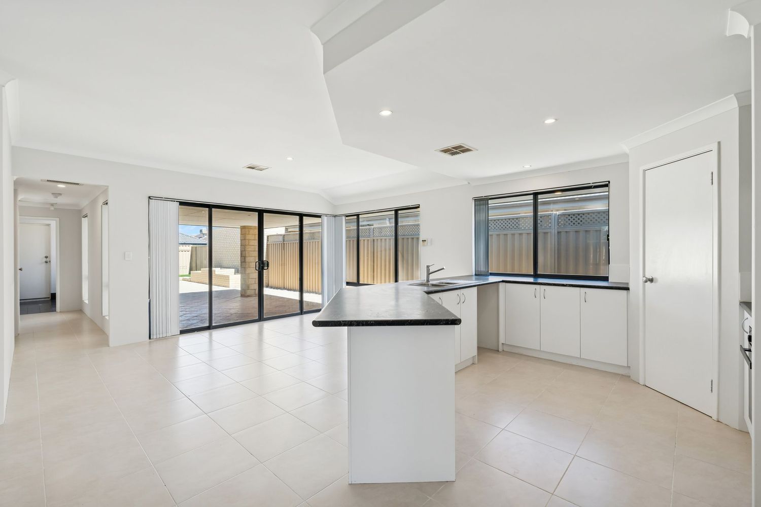 • Spacious open-plan living + dining with modern neutral finishes and tiled floors